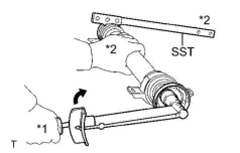(d) Using SST to hold the universal joint flange, press the No. 2 center support bearing assembly into position by tightening a new nut and washer.