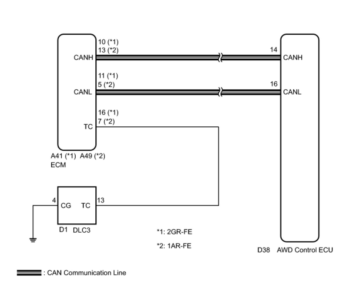 Connecting terminals TC and CG of the DLC3 causes the AWD control ECU to display 2-digit DTCs by flashing the AWD warning light.