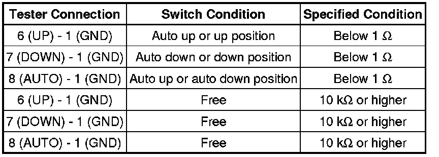 (2) If the result is not as specified, replace the power window regulator switch assembly (for rear LH side).