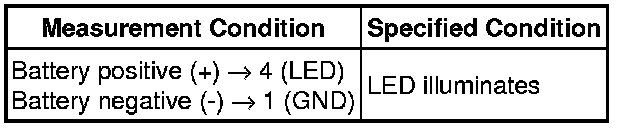 (1) Apply battery voltage to the power window regulator switch assembly and check that the LED illuminates.
