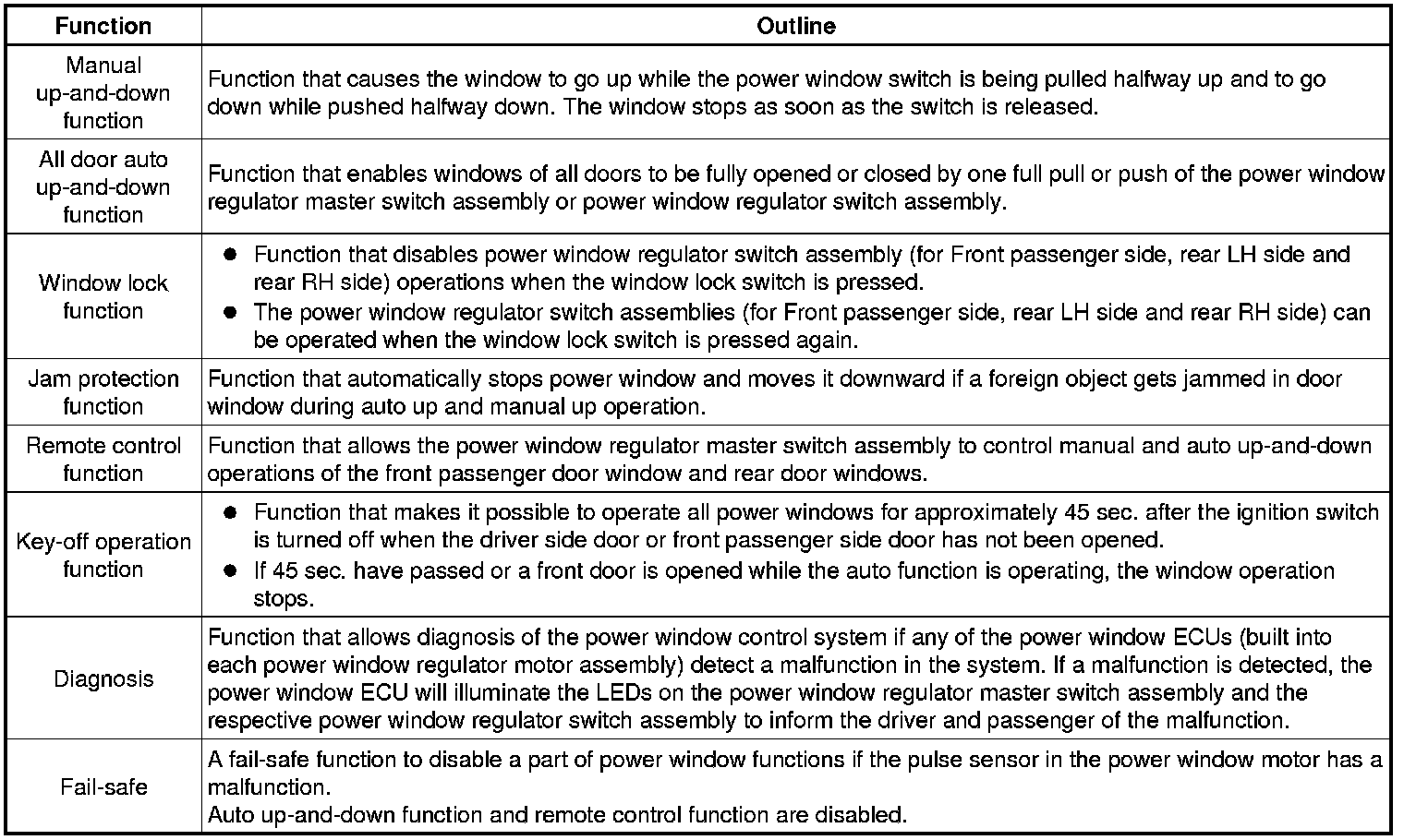 WINDOW / GLASS: POWER WINDOW CONTROL SYSTEM: SYSTEM DESCRIPTION