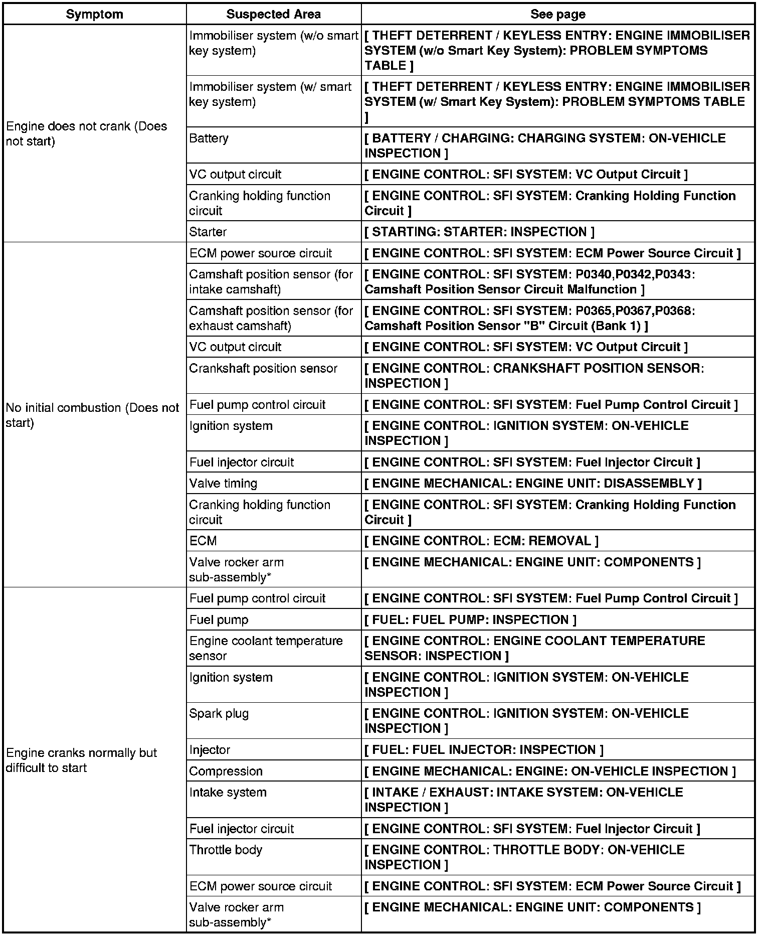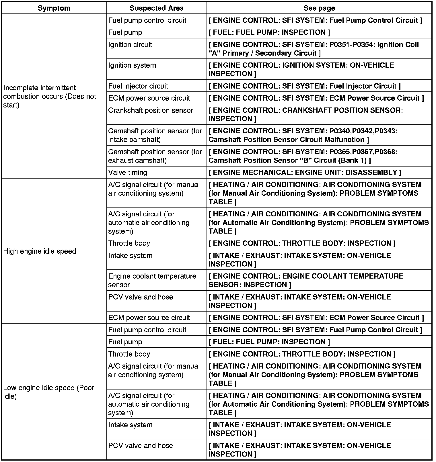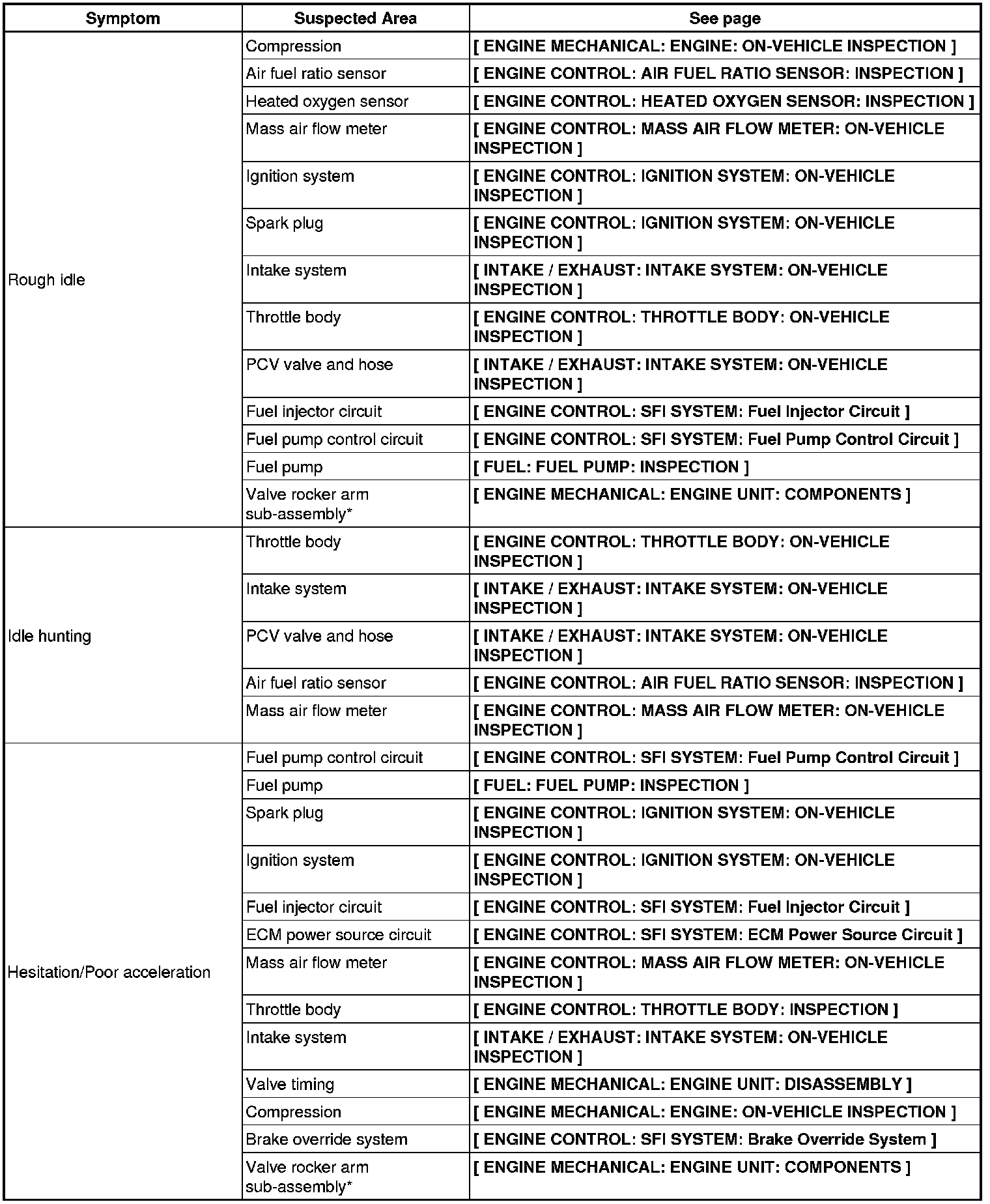 2ZR-FE ENGINE CONTROL: SFI SYSTEM: PROBLEM SYMPTOMS TABLE