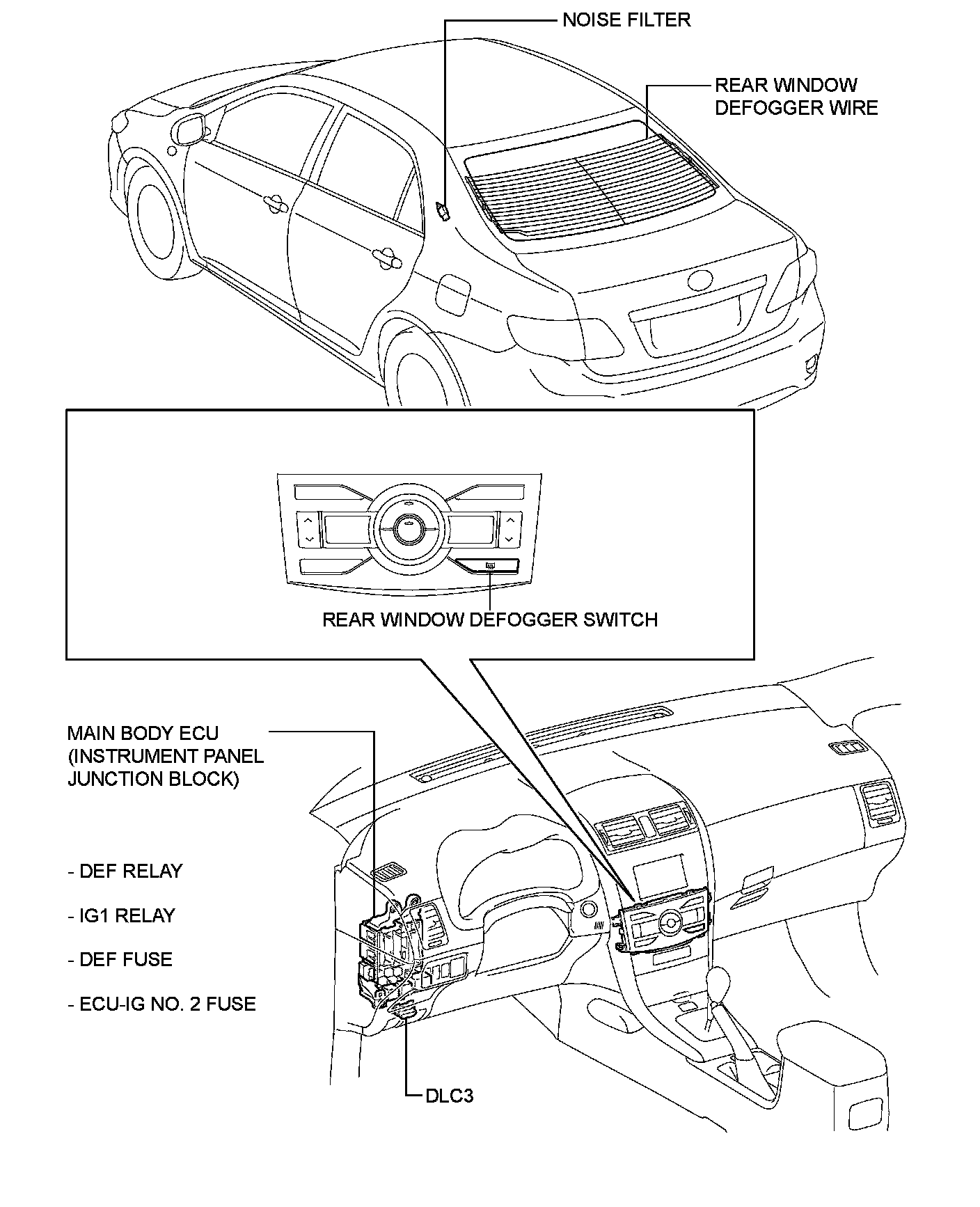 WINDOW / GLASS: WINDOW DEFOGGER SYSTEM (for Automatic Air Conditioning System): PARTS LOCATION