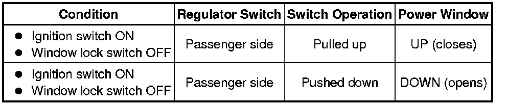WINDOW / GLASS: POWER WINDOW CONTROL SYSTEM: OPERATION CHECK