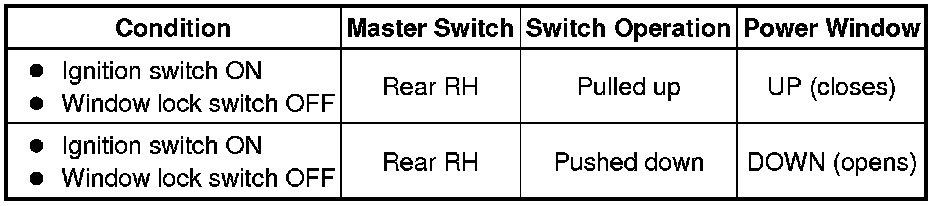 (c) Wait until 60 seconds have passed since the switch was released in the first step. Check that pressing the switch results in normal window movement.