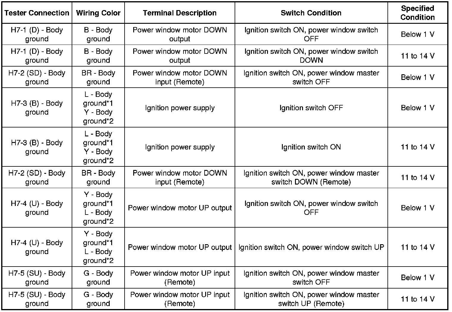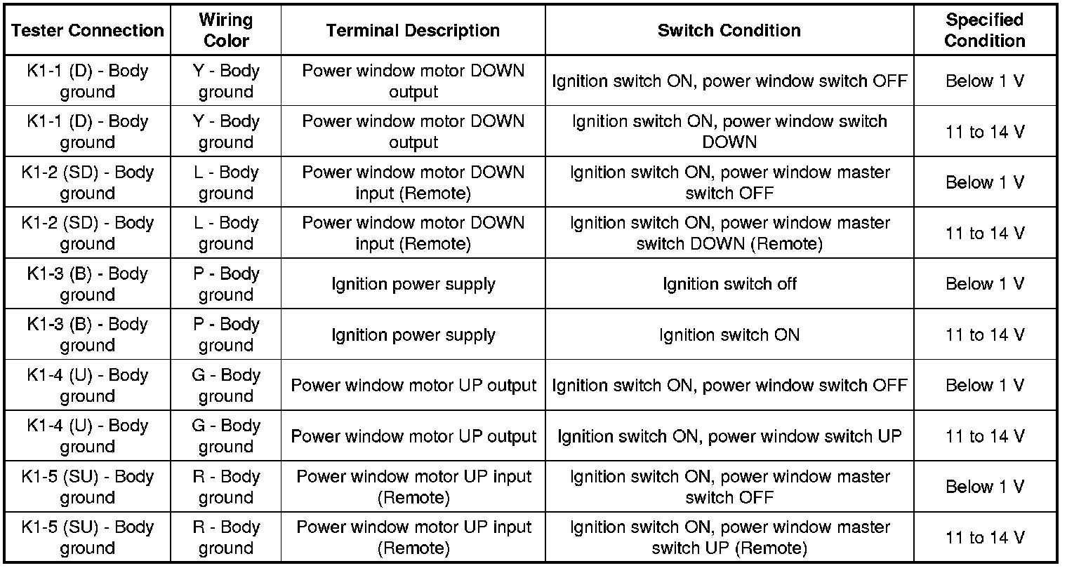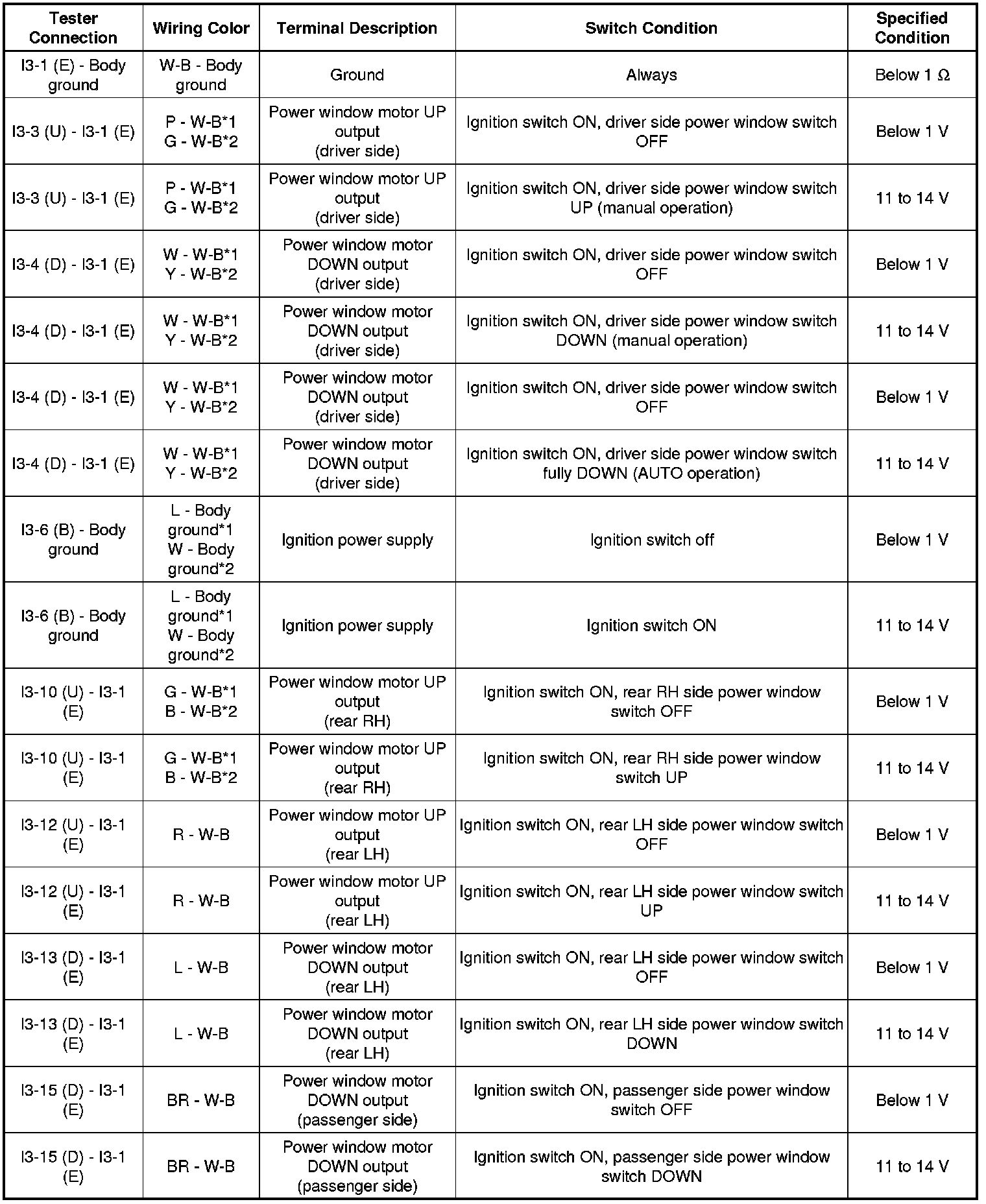 WINDOW / GLASS: POWER WINDOW CONTROL SYSTEM: TERMINALS OF ECU