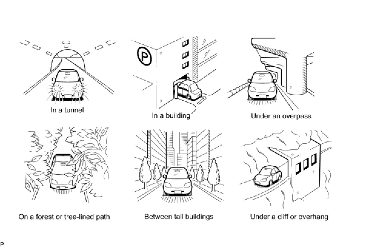 If the area above the vehicle is blocked, such as when in a building or tunnel, reception may not be possible.