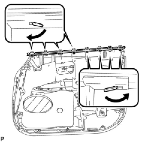 (a) Remove the front door lock open rod as indicated by the arrows, in the order shown in the illustration.