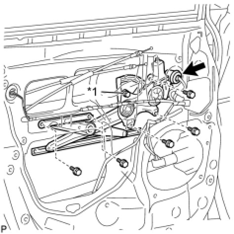 (d) Remove the front door window regulator assembly.