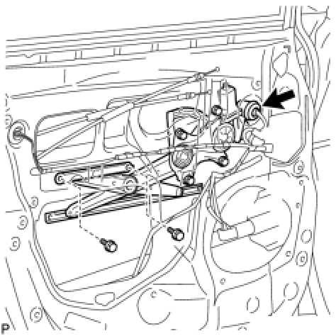 (e) Install the front door window regulator assembly with the 2 bolts.