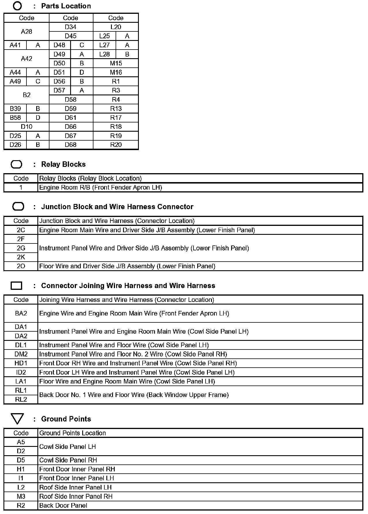 Locations: The locations of components, connectors, ground points, and splices referred to within these diagrams can be found at Vehicle Locations. Locations
