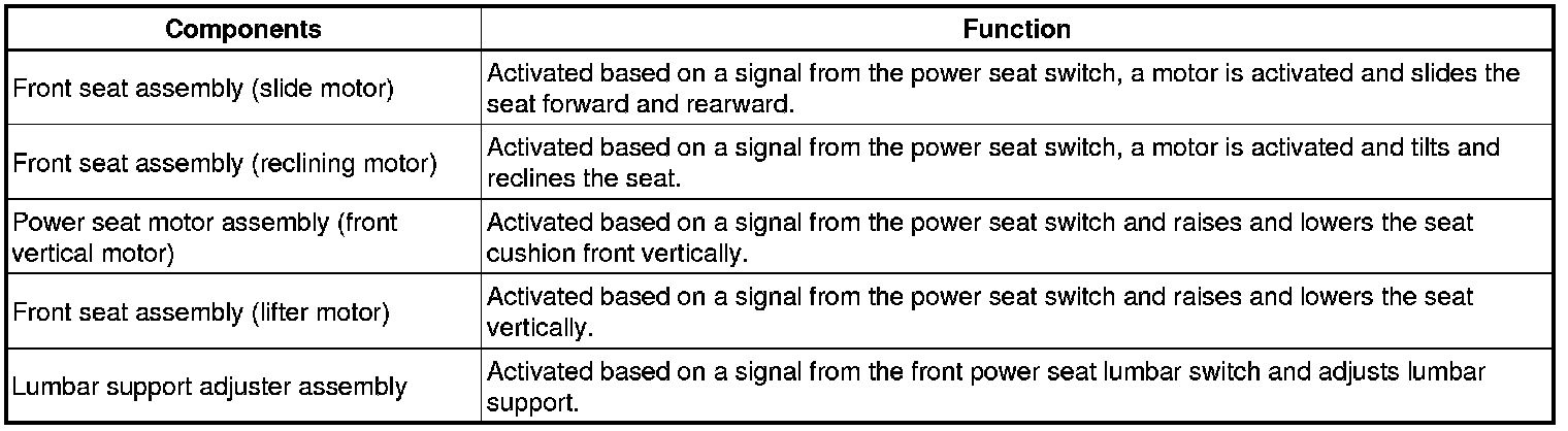 1. FRONT POWER SEAT CONTROL SYSTEM DESCRIPTION