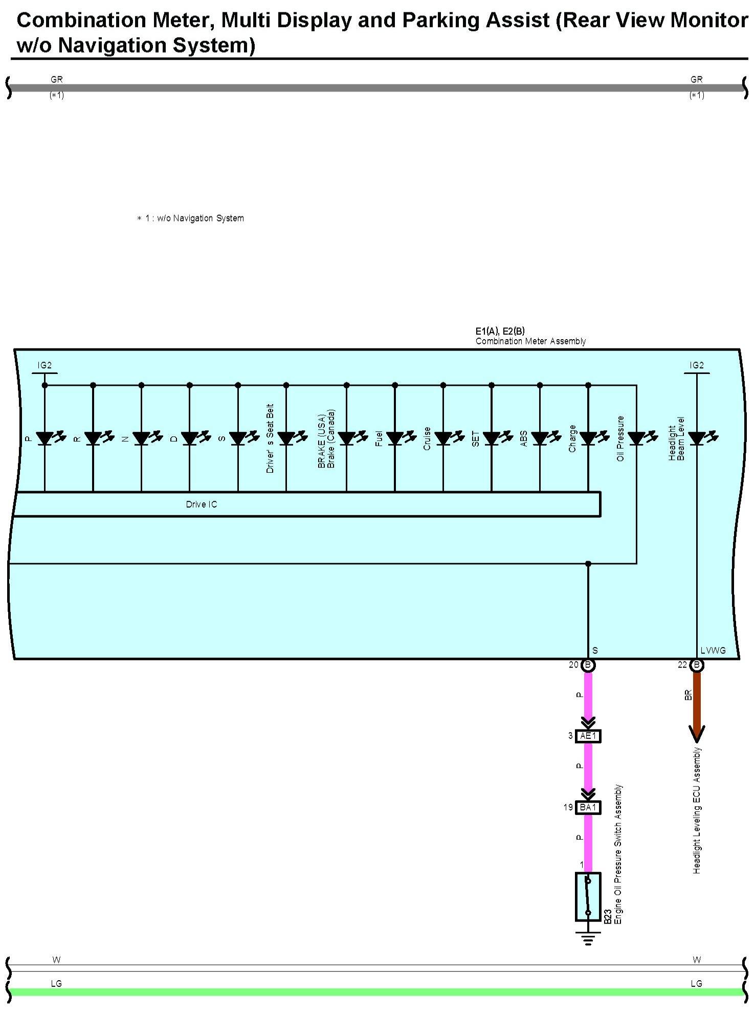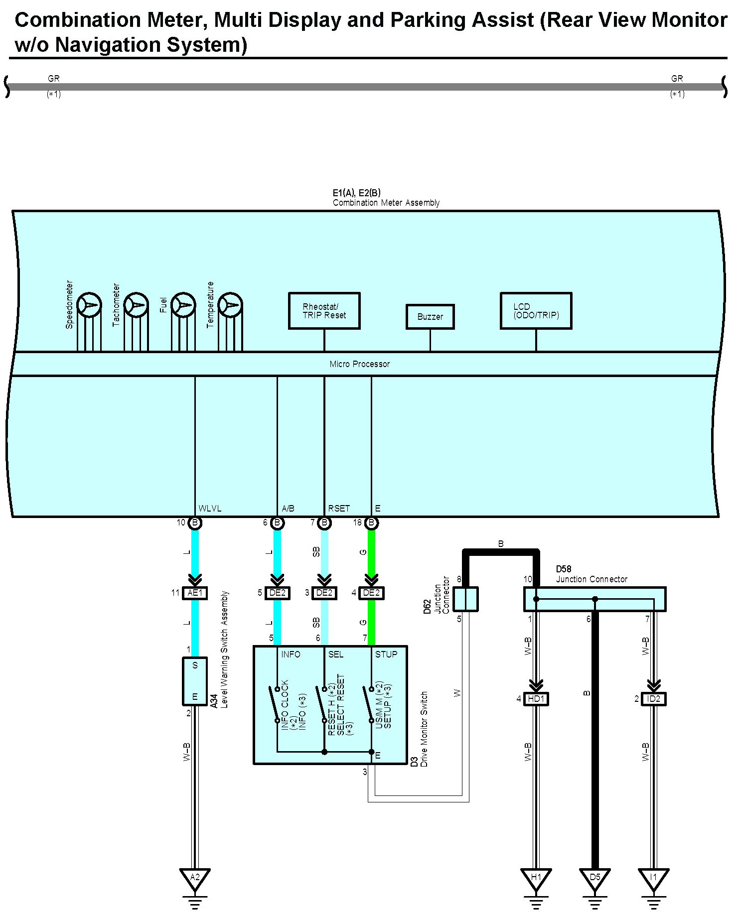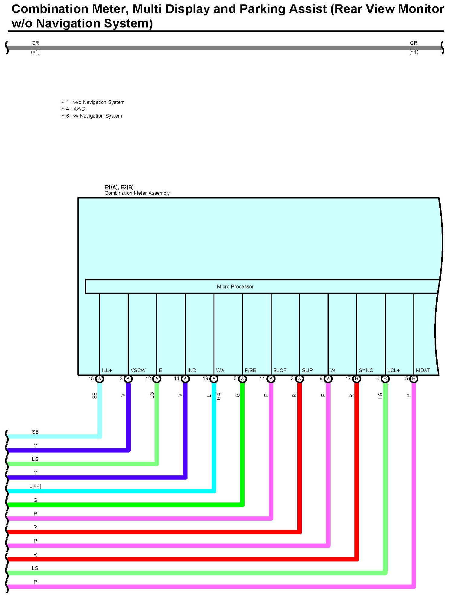 Combination Meter, Multi Display And Parking Assist (Rear View Monitor w/o Navigation System) Part 1: