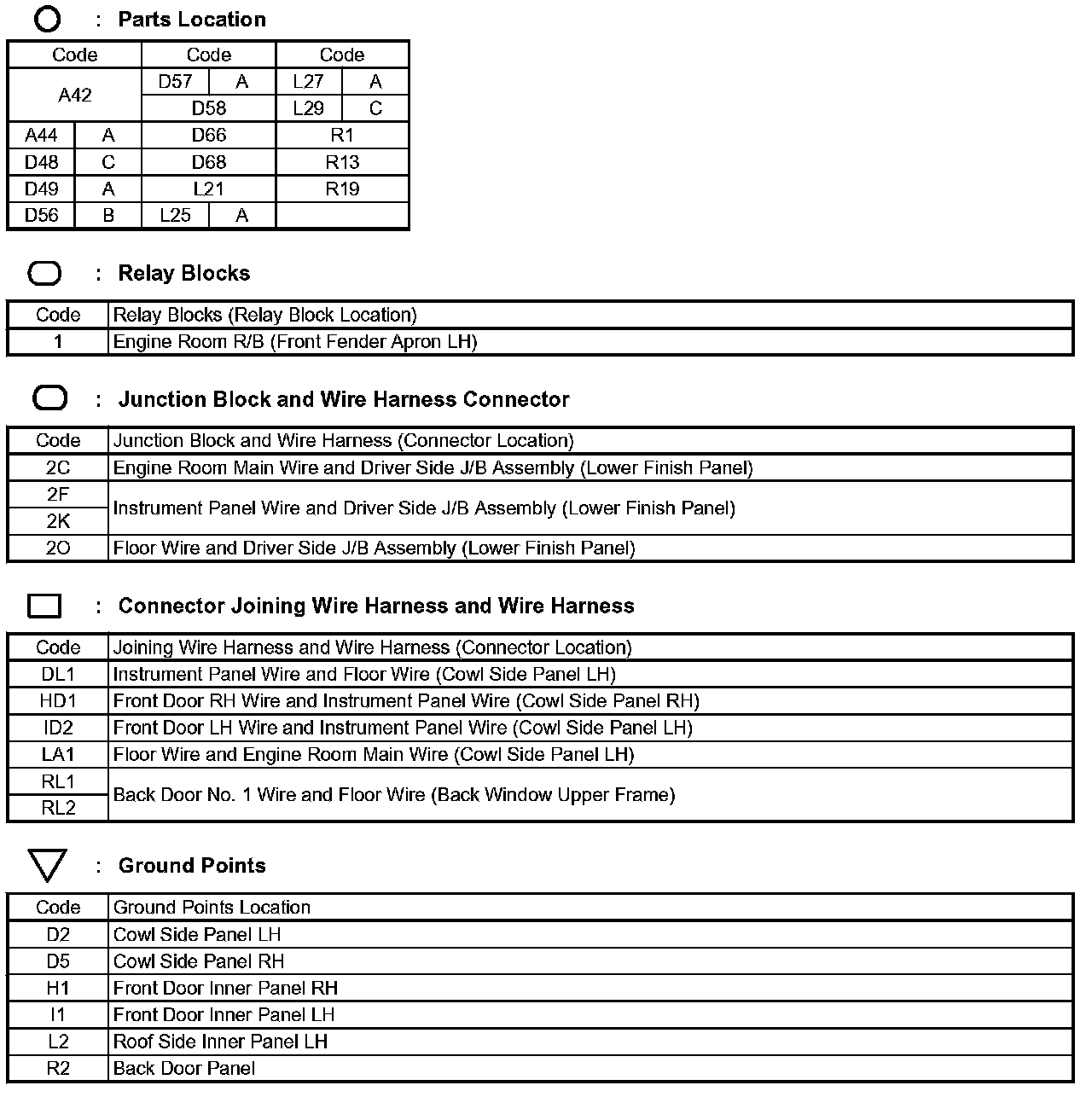 Locations: The locations of components, connectors, ground points, and splices referred to within these diagrams can be found at Vehicle Locations. Locations