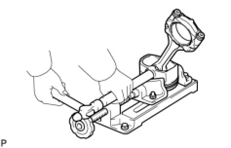 (b) Using a plastic-faced hammer and brass bar, lightly tap out the piston pin. Then remove the connecting rod.