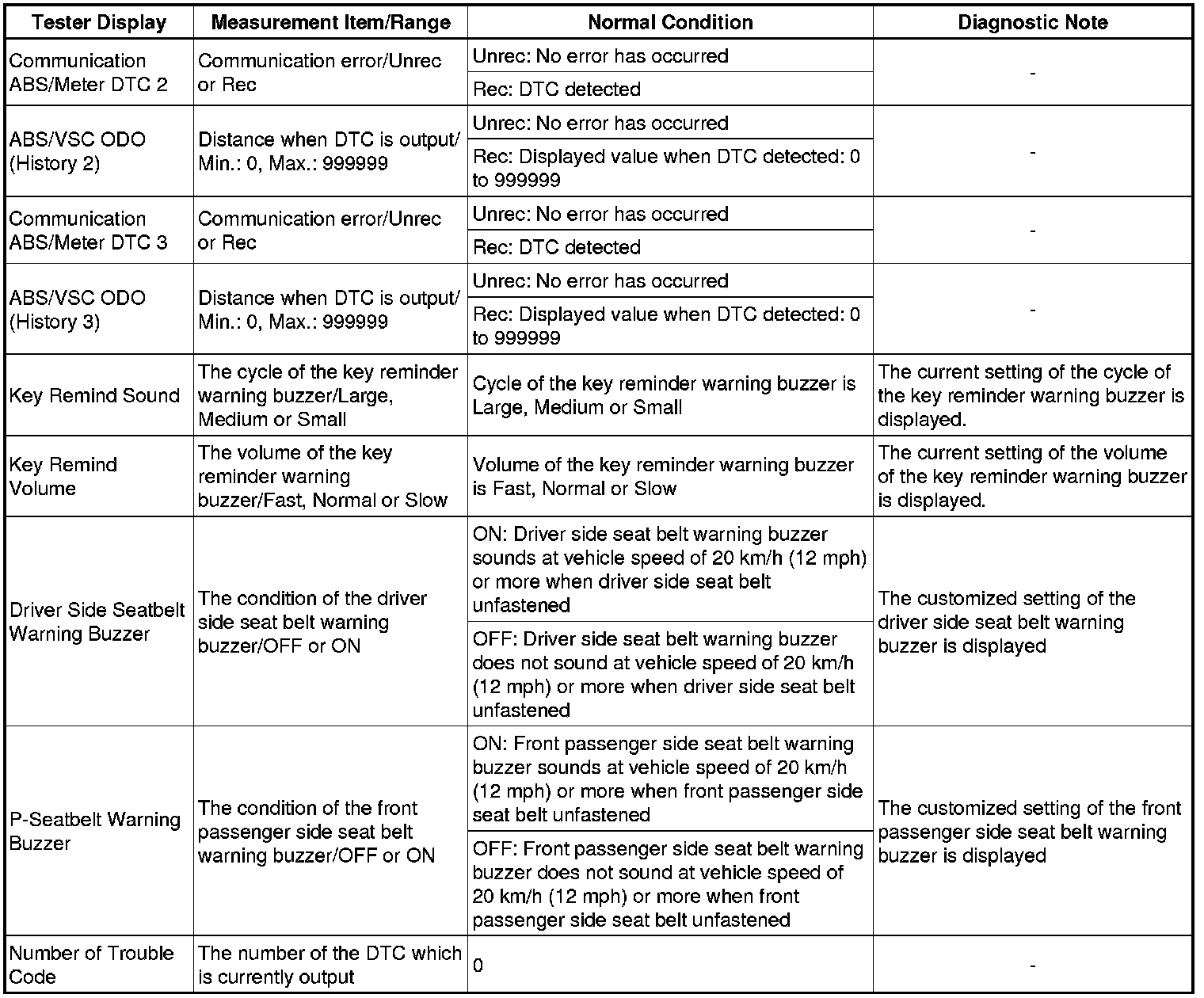 (1) for Combination Meter: Body Electrical / Combination Meter / Data List.