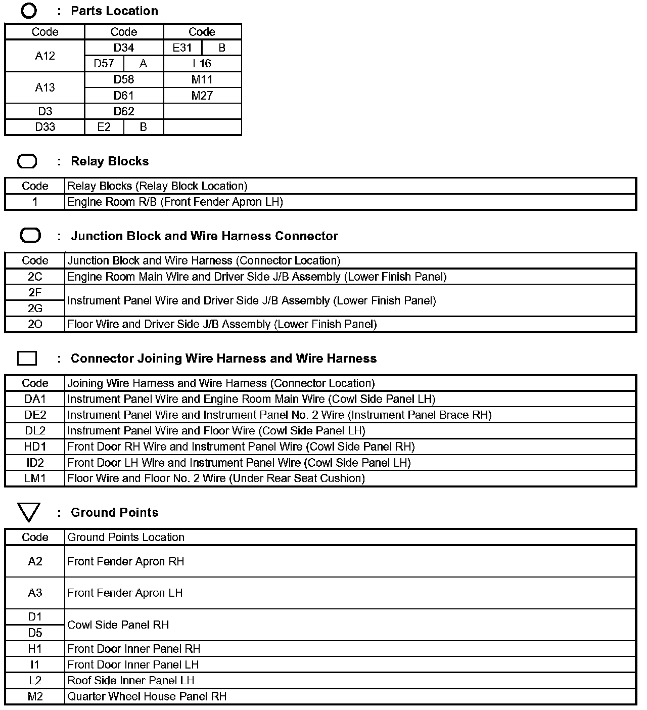 Locations: The locations of components, connectors, ground points, and splices referred to within these diagrams can be found at Vehicle Locations. Locations
