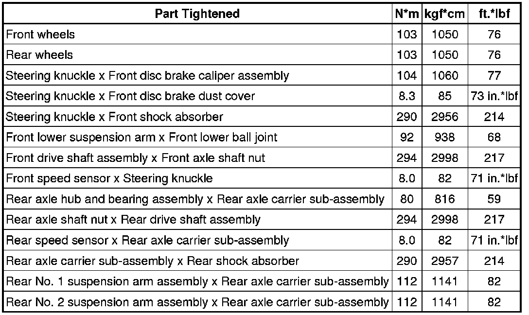 SPECIFICATIONS: AXLE AND DIFFERENTIAL: TORQUE SPECIFICATIONS