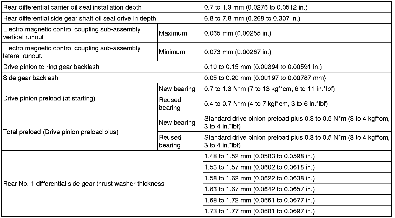 SPECIFICATIONS: AXLE AND DIFFERENTIAL: SERVICE DATA