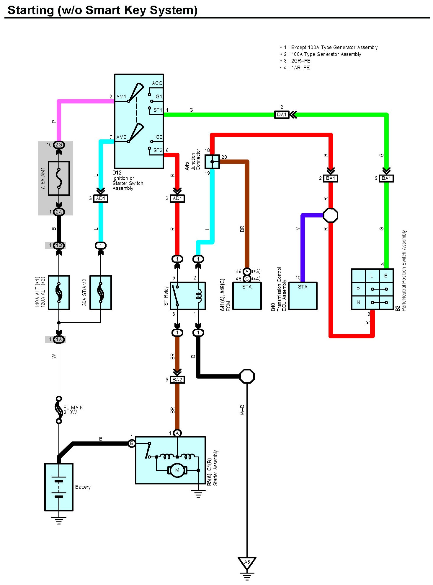Starting (w/o Smart Key System):