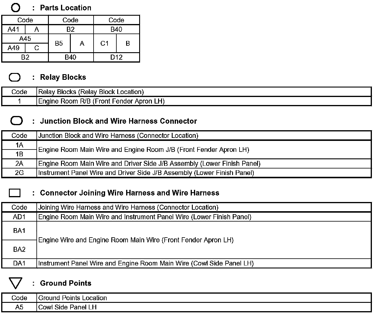 Locations: The locations of components, connectors, ground points, and splices referred to within these diagrams can be found at Vehicle Locations. Locations
