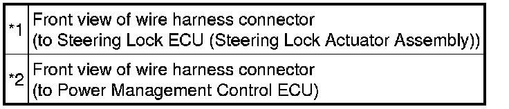 The steering lock ECU (steering lock actuator assembly) is connected to the power management control ECU. The steering lock ECU (steering lock actuator assembly) cannot activate the motor unless it receives permission signals from both ECUs. (The power management control ECU permits the steering lock ECU (steering lock actuator assembly) to supply power to activate the motor.)