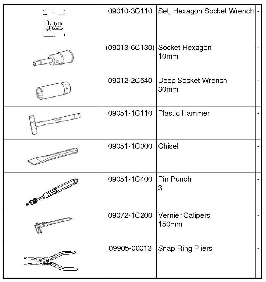 PREPARATION: AXLE AND DIFFERENTIAL: RECOMMENDED TOOLS