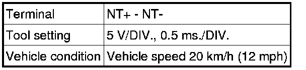 Check the waveform between terminals NT+ and NT- of the ECM connector.