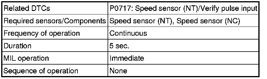 U250E AUTOMATIC TRANSMISSION / TRANSAXLE: AUTOMATIC TRANSAXLE SYSTEM: P0717: Turbine Speed Sensor Circuit No Signal