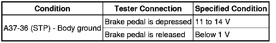 (c) Measure the voltage according to the value(s) in the table below when the brake pedal is depressed and released.