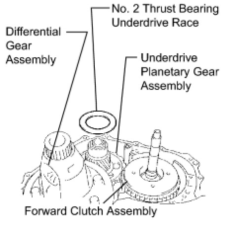 (a) Install the No. 2 thrust bearing underdrive race to the underdrive planetary gear assembly.