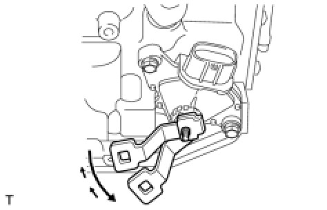 Align the dial with the notches on the manual valve lever and turn the dial 90° to install the parking lock rod.