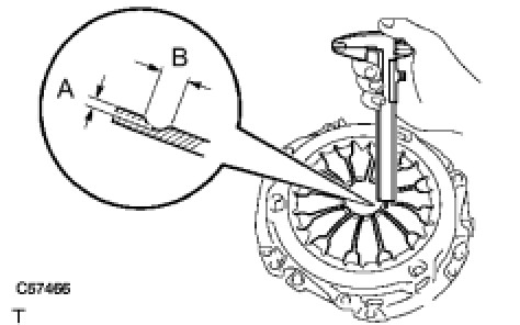 (a) Using a vernier caliper, inspect the diaphragm spring for depth and width of wear.