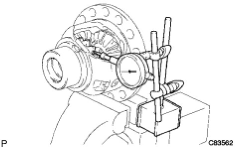 (a) Hold the front differential pinion to the front differential case side. Using a dial indicator, measure the front differential side gear backlash.