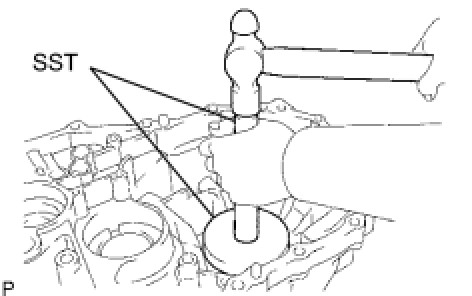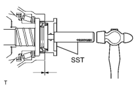(b) Using SST and a hammer, install a transaxle case oil seal.