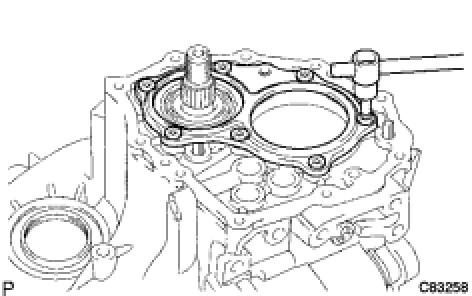 (j) Using a "TORX" socket wrench (T45), remove the 7 screws and rear bearing retainer from the manual transmission case.