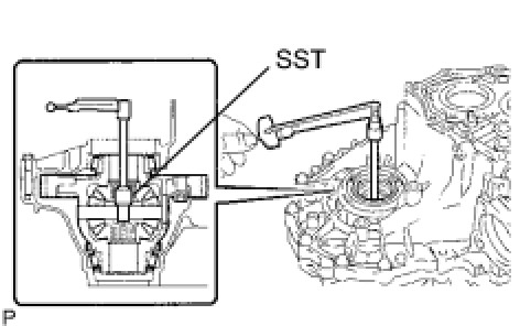 (a) Using SST and a hammer, install the front differential case front tapered roller bearing (outer race) to the manual transaxle case.