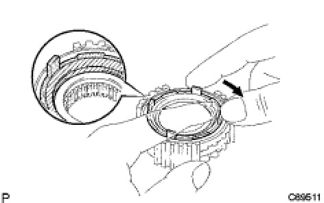 (b) Check that the No. 5 synchronizer ring middle does not rotate while pushing it against the No. 3 clutch hub.