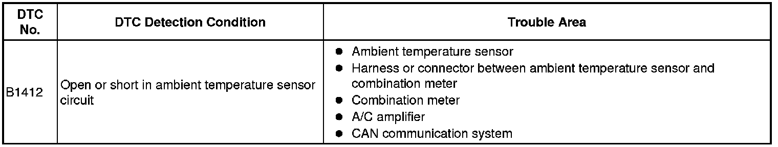 HEATING / AIR CONDITIONING: AIR CONDITIONING SYSTEM (for Manual Air Conditioning System): B1412; Ambient Temperature Sensor Circuit; 2013 MY Corolla [07/2012 -]