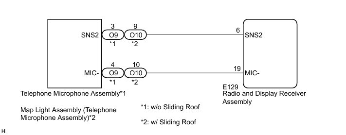 The radio and display receiver assembly and telephone microphone assembly are connected to each other using the microphone connection detection signal lines (w/o Sliding Roof).