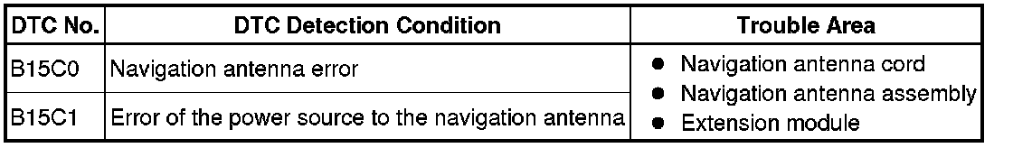 These DTCs are stored when a malfunction occurs in the navigation antenna assembly.