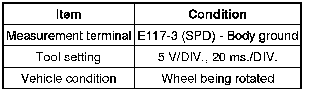 (2) Connect an oscilloscope to terminal E117-3 (SPD) and body ground.
