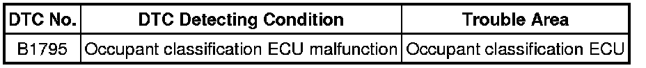 SUPPLEMENTAL RESTRAINT SYSTEMS: OCCUPANT CLASSIFICATION SYSTEM: B1795; Occupant Classification ECU Malfunction; 2013 MY Corolla [07/2012 -]