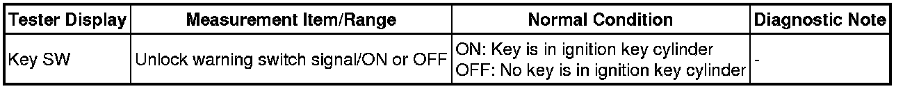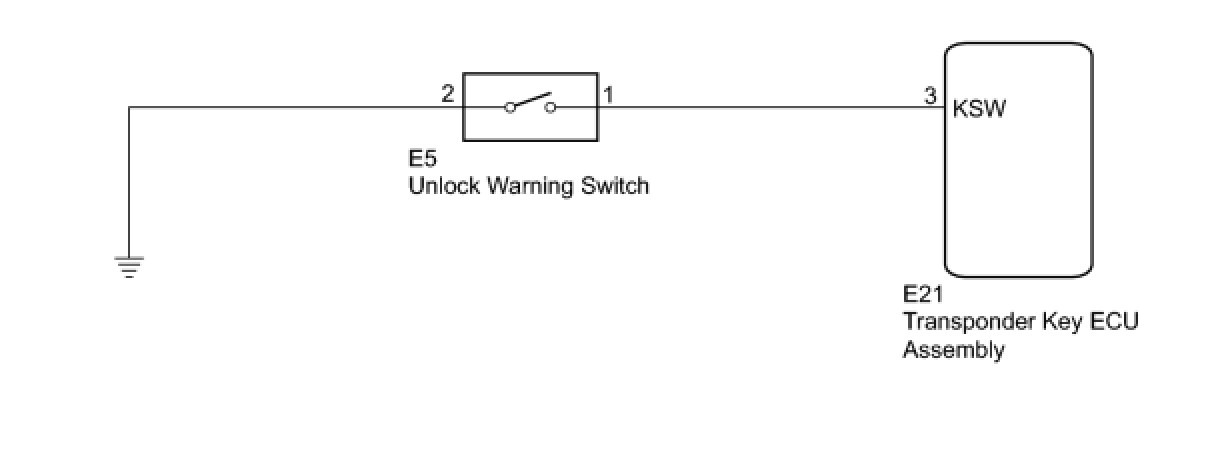 This DTC will be output if the transponder key ECU assembly does not detect that the unlock warning switch is ON even when the ignition switch is ON. Under normal conditions, the unlock warning switch assembly is ON when the ignition switch is ON.