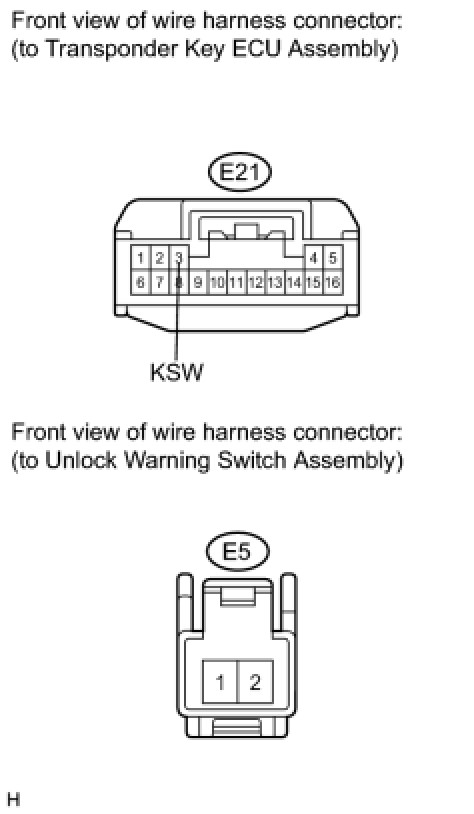 4. CHECK HARNESS AND CONNECTOR (TRANSPONDER KEY ECU - UNLOCK WARNING SWITCH)