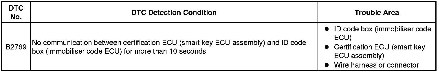 THEFT DETERRENT / KEYLESS ENTRY: ENGINE IMMOBILISER SYSTEM (w/ Smart Key System): B2789; No Response from ID BOX; 2013 MY Corolla [07/2012 -]