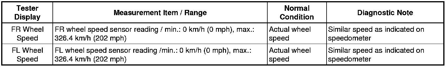 4. READ VALUE USING TECHSTREAM (FRONT SPEED SENSOR)