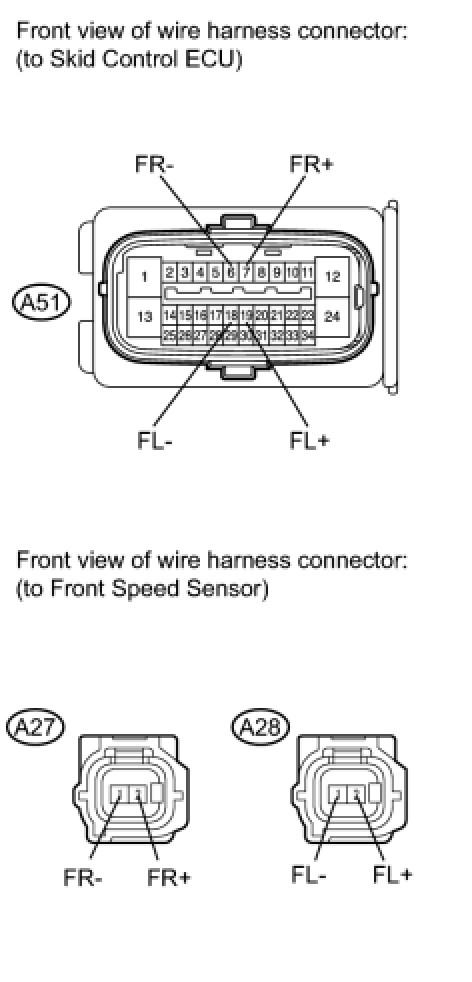 10. CHECK HARNESS AND CONNECTOR (SKID CONTROL ECU - FRONT SPEED SENSOR)