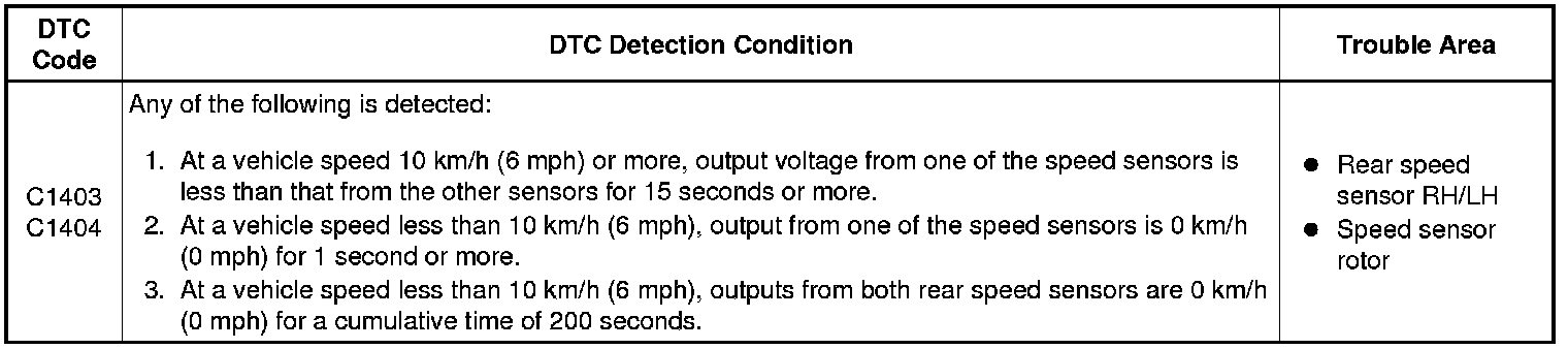 BRAKE CONTROL / DYNAMIC CONTROL SYSTEMS: VEHICLE STABILITY CONTROL SYSTEM: C1403, C1404; Rear Speed Sensor RH Malfunction; 2013 MY Corolla [07/2012 -]