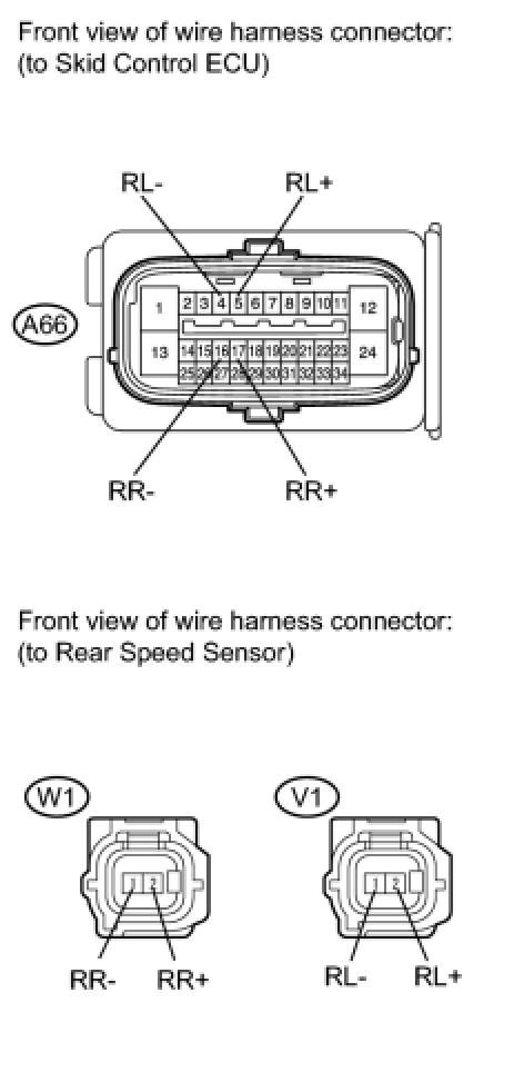 (c) Disconnect the skid control ECU connector and the rear speed sensor connector.